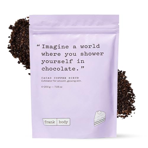 Frank Body Cacao Coffee Scrub | Natural, Vegan, Cruelty Free Exfoliating Body Scrub Smooths, Hydrates, and Nourishes Skin with Cacao Extract, Macadamia Oil, and Vitamins A, E, and D | 7.05 oz / 200 g