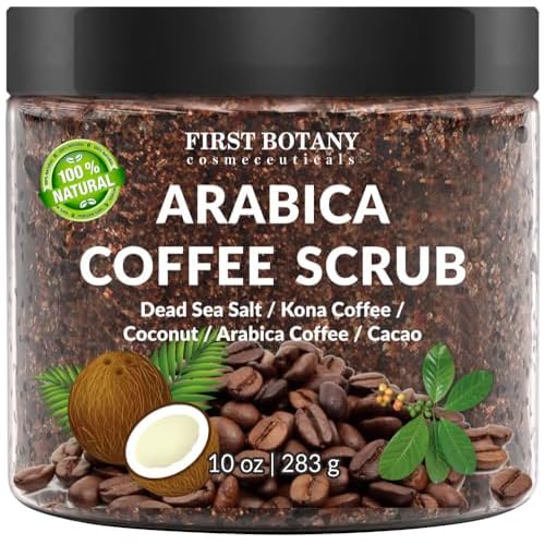First Botany Cosmeceuticals, 100% Natural Arabica Coffee Scrub with Organic Coffee Coconut & Shea Butter Acne Anti Cellulite & Stretch Mark treatment Spider Vein Therapy, Varicose Veins Eczema, 10 oz