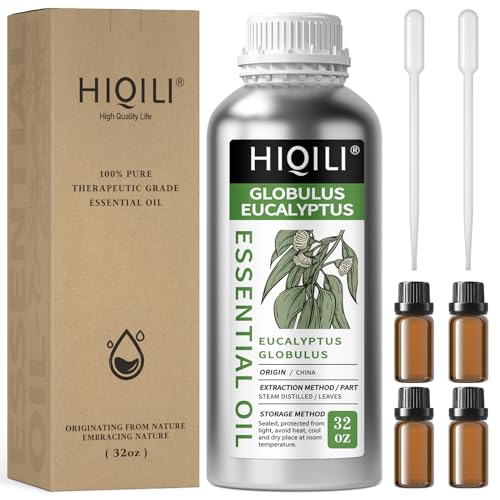 HIQILI Eucalyptus Essential Oil for Spray, Diffuser & Skin, 100% Pure Undiluted – 32 Fl Oz