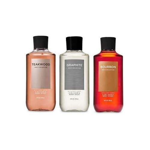Bath and Body Works 3 Pack 2-in-1 Hair + Body Wash Teakwood, Graphite and Bourbon. 10 Oz.