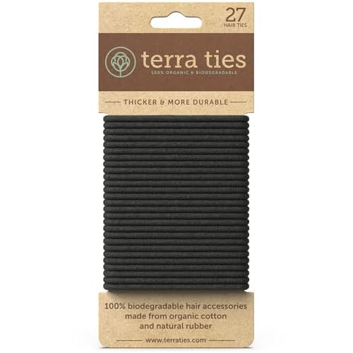 BIODEGRADABLE Elastic Hair Ties for Women & Men – Organic No Crease Black Hair Tie Ponytail Holders and Hairties for Buns – Plastic Free Hairbands for Women and Mens Hair – 5mm (27 count)