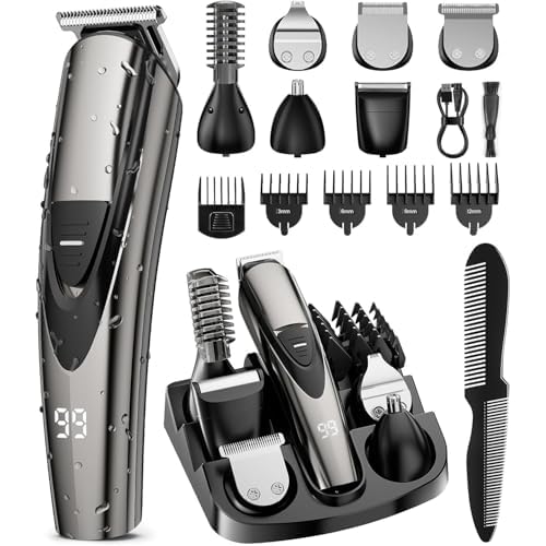 Electric Beard Trimmer for Men: 16-in-1 Professional Barber Hair Clippers – Cordless Grooming Kit – Turbo Speed & Precision Blades