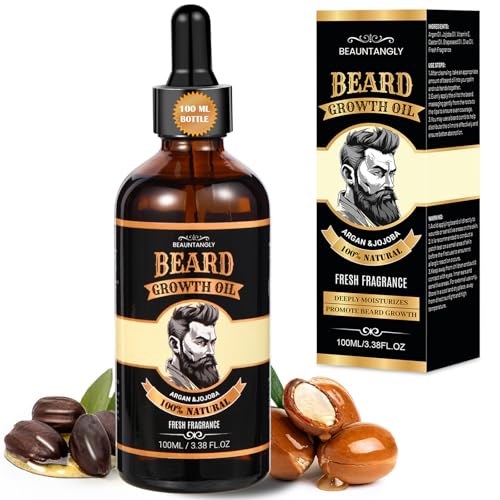 Beard Growth Oil for Men, 100% Natural Beard Oil with Argan Oil, Jojoba Oil, Castor Oil – 3.38 FL/100ML Fresh Fragrance Beard Conditioner Softens, Nourishes,Strengthens, Promotes Beard Growth