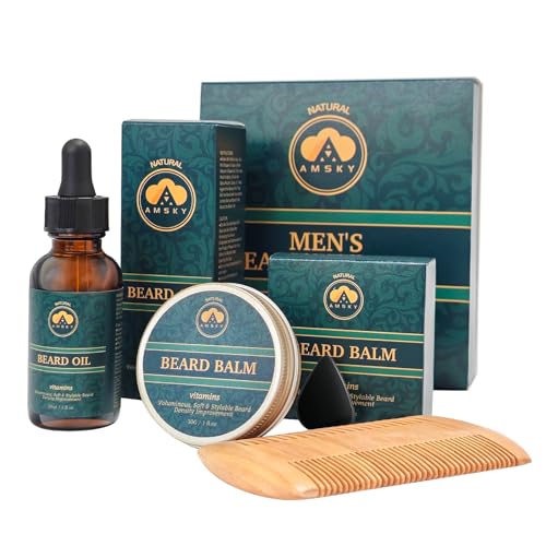AMSKY Beard growth kit – Beard oil, beard balm, beard comb, productos para la barba | boyfriend birthday gifts | gifts for him husband | Christmas | Husband stocking stuffers