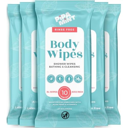 Body Wipes (5 Packs) 50 XL Shower Wipes Body Wipes for Adults Bathing, Traveling, Camping, Gym, Car, Elderly, Bedridden – Bath Wipes – Disposable Washcloths for Adults No Rinse