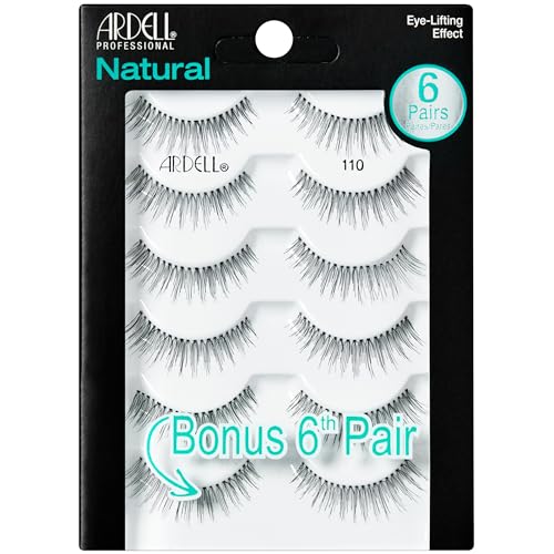 Ardell False Eyelashes, Natural Lashes 110 – Lightweight Reusable Strip Lashes, Eye-Lifting Effect, 5 Pairs + Bonus Pair