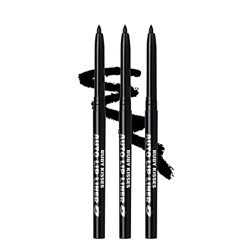 Ruby Kisses Auto Lip Liner Pencil (Black 3 Pack), Long Lasting & Non-Fading, Smooth Application, Non-Feathering with Rich Pigmented Color, No Sharpener Needed, Ideal for Full Lips Look