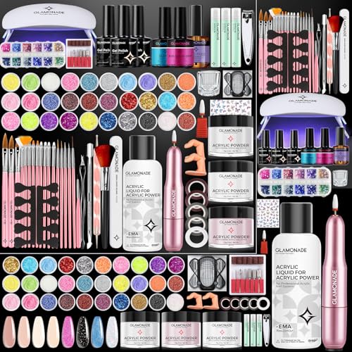 Acrylic Nail Kit for Beginners: Professional Complete Set with Drill UV Light Gel Polish Nail Art Tools for Salon Quality Manicures at Home