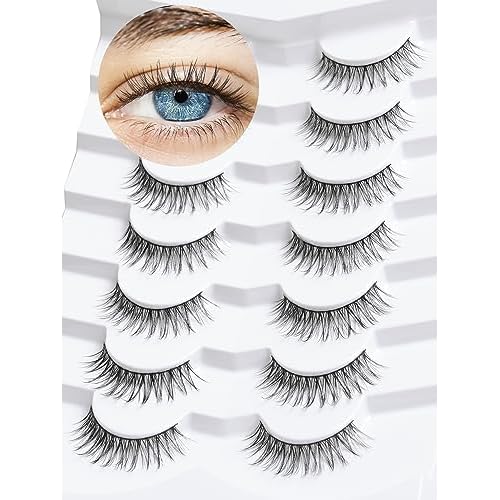 False Eyelashes Natural Look Wispy Lashes 10mm Short Lash C Curl 0.1MM Thin Band Lashes Pack Siligli Fake Eyelash 7 Pair