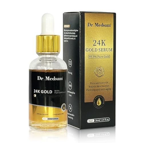 Dr.Medsam 24K Gold Serum, 99.9% Pure Gold Anti Aging Moisturizer with Hyaluronic Acid Niacinamide Deep Hydration and Firming Skin Care Glow Serum 30ML/1.01 Oz