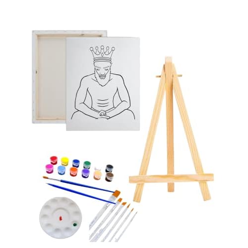 Essenburg Pre Drawn Canvas Painting Kit | King Pharaoh Valentines Pre Drawn Stretched Canvas Kit | Adult Sip and Paint Party| DIY Date Night Couple Activity (S 8X10 PAINT, EASLE, 10 PAINT BRUSHES)