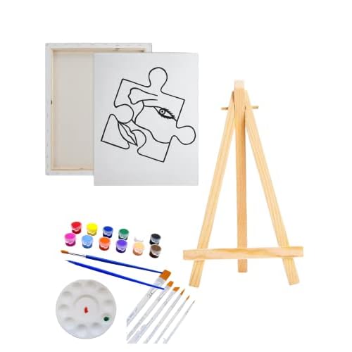 Essenburg Pre Drawn Canvas Picasso Puzzle Paint Kit | Teen, Kids and Adult Sip and Paint Party | DIY Date Night Couple Activity| Canvas Boards for painting| (S 8X10 PAINT, EASLE, 10 PAINT BRUSHES)