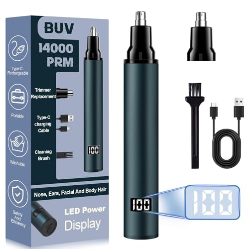 Nose Hair Trimmer with LED Display- 2025 Professional Painless Ear Hair Trimmers for Men and Women, USB Rechargeable Nose Hair Trimmer Clipper – 14,000 RPM IPX7 Waterproof Dual Edge Blades, Blue B