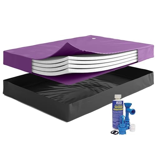 SEMI-WAVELESS 60%, Queen Size, Waterbed Hardside Mattress Bundle, Includes Fill & Drain Kit, 8oz. Water Conditioner and Stand-Up Liner, Heavy Duty Vinyl, 60″W x 84″L x 9″H, Frame NOT Included
