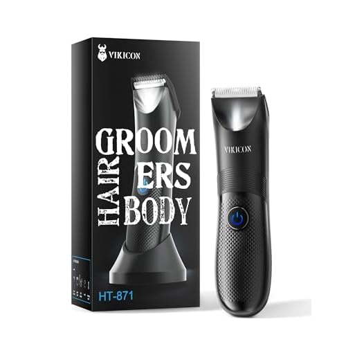 VIKICON Manscape Trimmer for Men – No Nicks Electric Razor-Shaver for Balls/Pubic/Groin/Legs/Chest Hair Removal w/Light & Ceramic Blade, IPX7 Waterproof Body Groomer USB-C Charging, Gifts for Him Dad