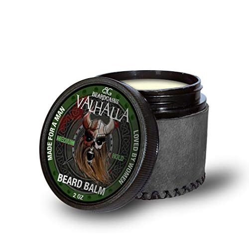 BEARD GAINS Medium Butter Hold Scented Balm for Men 2oz | Valhalla Luxury Vikings Conditioner | Style, Groom & Grow Facial Hairs W/Organic and Natural Product | Made in USA