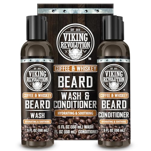 Viking Revolution Beard Wash and Beard Conditioner for Men with Argan Oil and Jojoba Oil- Beard Softener and Strengthener Beard Care Beard Shampoo and Conditioner with Ginseng Root(5oz,Coffee Whiskey)