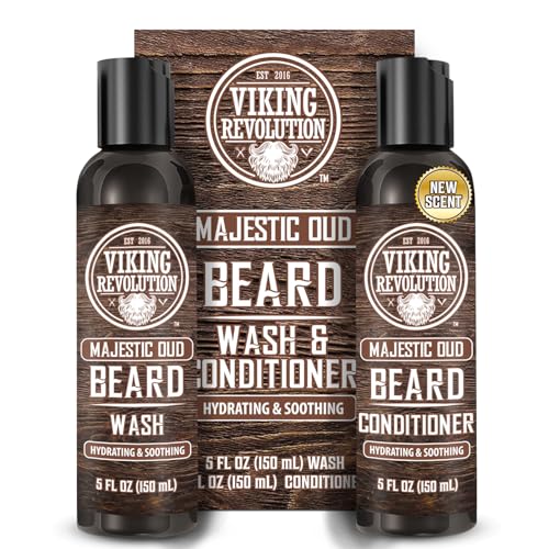Viking Revolution Beard Wash and Beard Conditioner for Men with Argan Oil and Jojoba Oil – Beard Softener and Strengthener Beard Care Beard Shampoo and Conditioner with Beard Oil (5oz, Majestic Oud)