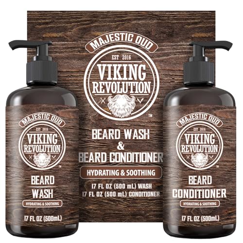 Viking Revolution Beard Wash and Beard Conditioner for Men with Argan Oil and Jojoba Oil – Beard Softener and Strengthener Beard Care Beard Shampoo and Conditioner with Beard Oil (17oz, Majestic Oud)