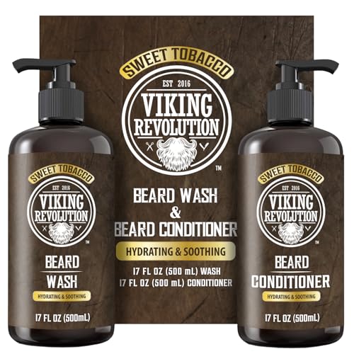 Viking Revolution Beard Wash and Beard Conditioner for Men with Argan Oil and Jojoba Oil – Beard Softener and Strengthener Beard Care Beard Shampoo and Conditioner with Beard Oil (17oz, Sweet Tobacco)