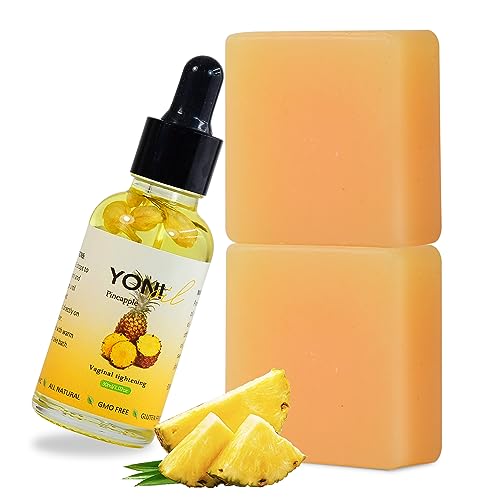 2 PCS Pineapple Soap Bar & Yoni Essential Oil Set, PH Balance and Wetness Eliminates Odor and Itching, Soothes for Women Feminine Wash Vaginial, Natural ingredient