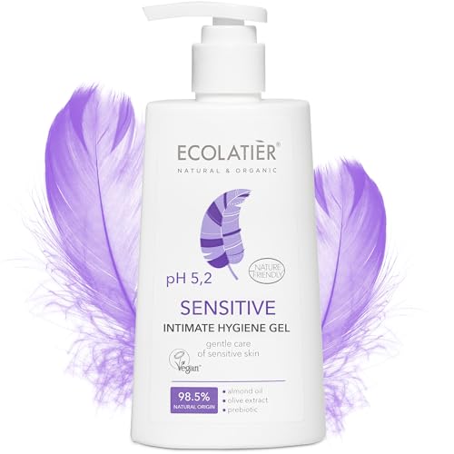 Feminine Wash Sensitive with Almond Oil & Olive Extract – 98.5% Natural, Vegan, pH 5.2 Balanced vaginal wash for woman Dry & Sensitive Skin, Restores Microflora & Moisture, 8.5 Fl Oz – ECOLATIER