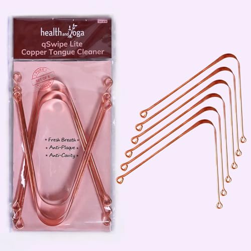 HealthAndYoga™ qSwipe Lite Copper Tongue Cleaners (Pack of 6) – Prevents Bad breath, Improves taste- Flexible, Curved ends provide good grip – Complete Oral Care/Hygiene for Travel/Office/Home