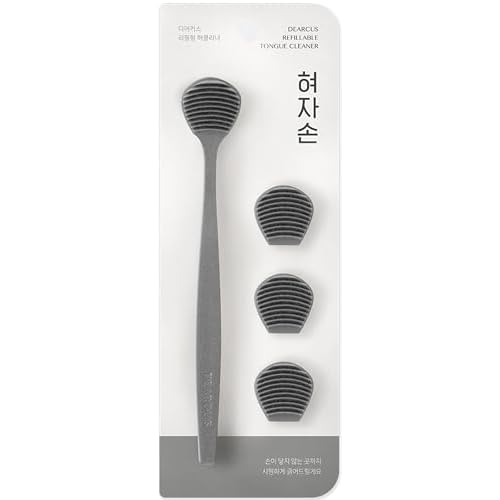 DEARCUS Korean Tongue Scraper with 3 Replaceable Heads – 100% BPA Free TPE Tongue Cleaner – Reduce Bad Breath & Without Hurt – Hygienic Scraper – Modern & Simple Design (Gray)