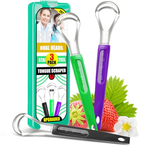 3 PCS Metal Tongue Scraper, Tongue Scrapers for Adults, Stainless Steel Tounge Scrappers, Tounge Scraper, Portable Tongue Scrappers YLYL