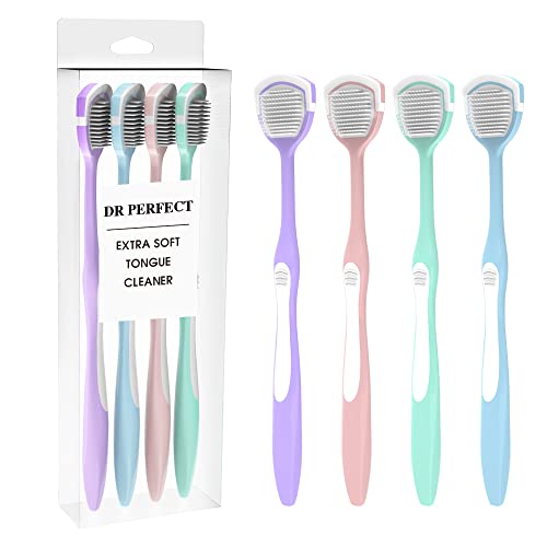 Soft Tongue Brush Scraper Cleaner Helps Fight Bad Breath Clean Your Tongue Without Hurt Pack Of 4 (GREEN PURPLE BLUE PINK)