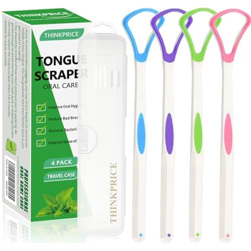 Tongue Scraper Cleaner 100% BPA Free Tongue Scrapers with Travel Handy Case for Adults, Kids, Healthy Oral Care, Easy to Use, Help Fight Bad Breath (4 PACK)
