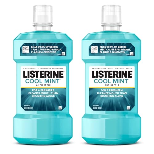 Listerine Cool Mint Antiseptic Mouthwash to Kill 99% of Germs That Cause Bad Breath, Plaque and Gingivitis, Cool Mint Flavor, 1 L 2-Pack