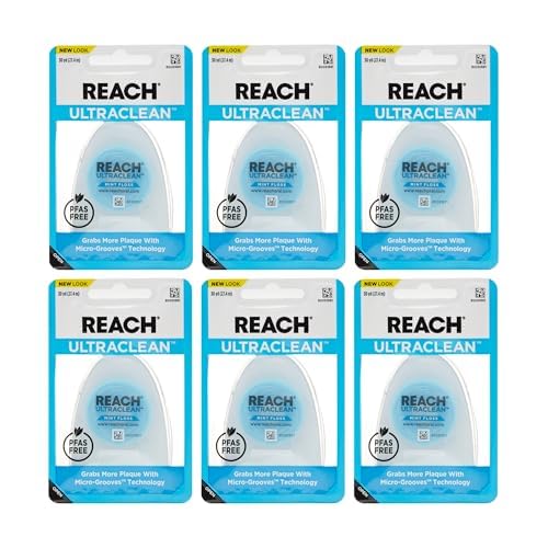 REACH Ultraclean Dental Floss, Mint, Plaque Remover for Teeth, Shred Resistant, Waxed, Easy on Gums & Teeth, Mint, Oral Care, PFAS Free, for Adults & Kids, 6 Pack, 30 yd