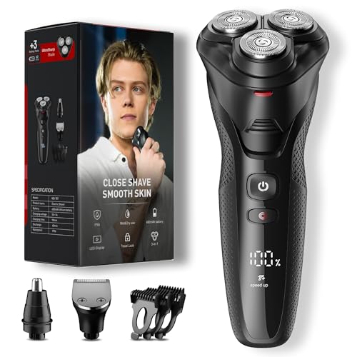 Cordless Electric Razor for Men: 3-in-1 Shaver for Beard/Nose/Sideburns – IPX7 Waterproof Travel Kit – Turbo Speed & Precision Blades