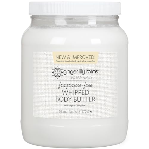 Ginger Lily Farms Botanicals Whipped Body Butter for Dry Skin, Ultra-Hydrating, 100% Vegan & Cruelty-Free, Fragrance-Free, 59 Ounces