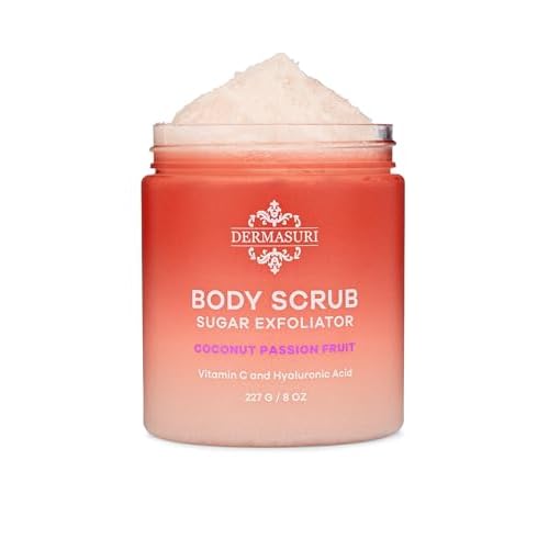 Dermasuri Exfoliating Sugar Scrub – Body Scrubber for Men & Women – Exfoliates & Removes Dead & Dry Skin for a Soft & Radiant Glow – Deep Hydration & Moisture – Coconut Passion Fruit