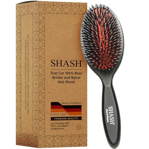 Since 1869 Hand Made In Germany – Nylon and 100% First Cut Boar Bristle Brush Suitable For Normal to Thick Hair – Gently Detangles, No Pulling or Split Ends – Softens Improves Texture, (Medium)