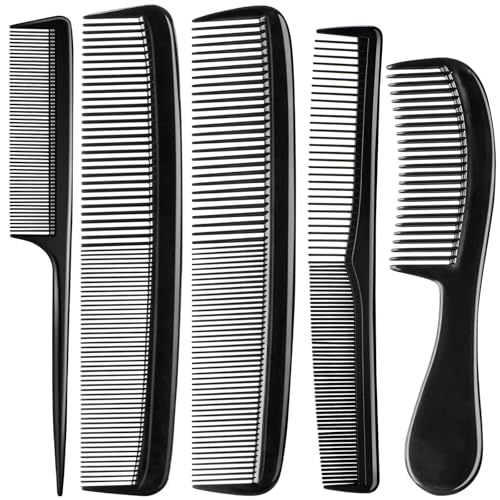 5 Piece Combs for Women and Man, Premium Black Hair Comb, Fine Tooth Tail Professional Combs and Styling Comb Set, Perfect for Parting, Teasing, Hairdressing, and Everyday Styling