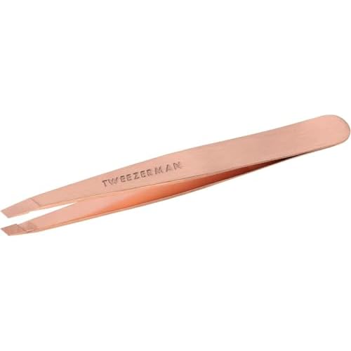 Tweezerman Stainless Steel Slant Tweezer – Eyebrow Tweezers for Women and Men (Rose Gold)