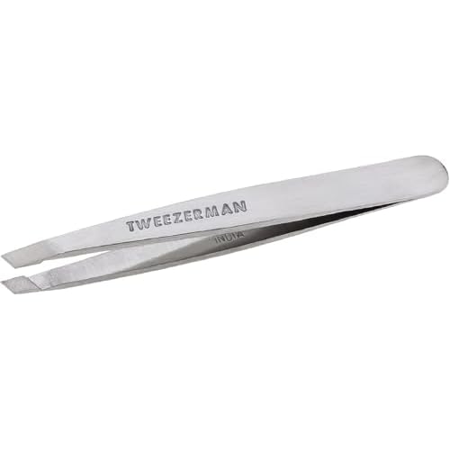 Tweezerman Mini Slant Tweezer – Tweezers for Eyebrows, Travel Tweezers for Eyebrows, Facial Hair, Ingrown Hair (Classic Stainless)