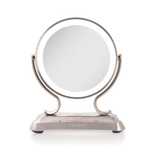 Zadro 12″ Glamour LED Makeup Mirror with Lights and Magnification 5X/1X Touch Control Mirror with Lights for Makeup Desk (X-Large | 12″ W x 16″ H | Satin Nickel)