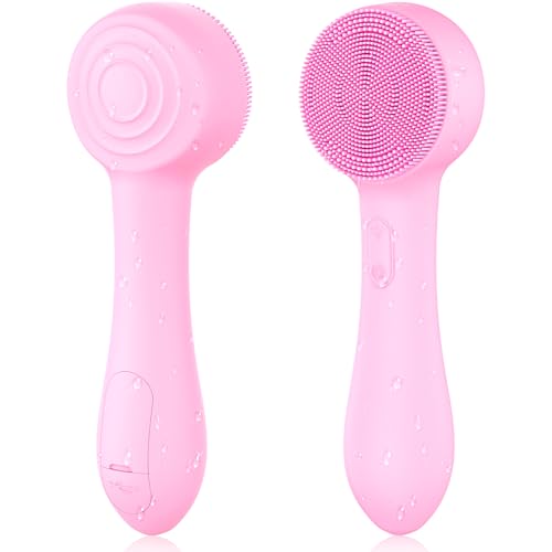 Facial Cleansing Brush Silicone Face Scrubber Waterproof Rechargeable Exfoliator Massage Device for Men & Women, Deep Pore Cleansing, Exfoliating, Removing Blackhead Electric Face Scrub Brush (Pink)