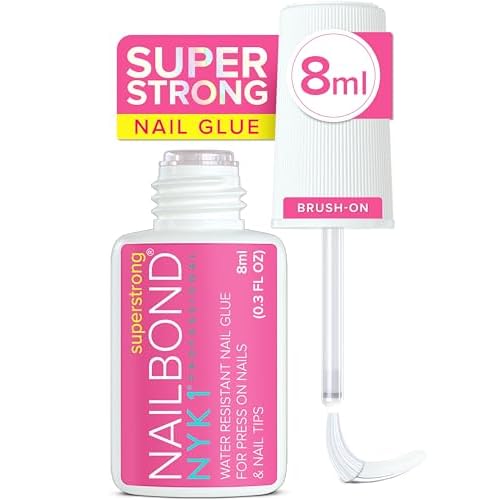 Super Strong Nail Glue for Press On Nails, Nail Tips & Acrylic Nails (8ml) NYK1 NailBond Brush On Glue for Press Ons, Tips & Acrylics – Long Lasting, Maximum Strength, Mess-Free Application