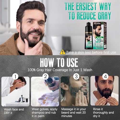 Black Beard Dye Shampoo for Men, Herbal Grey Reducing Mens Black Beard Mustache Color Shampoo 3 in 1 Simpler, Easy Application Natural Effect Safe & Gentle, 200ML