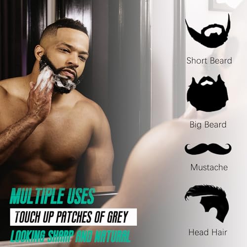 MULTIPLE USES—Whether you’re styling a beard, mustache, goatee, or sideburns, this product works flawlessly on all hair types. Its precision application ensures even coverage, giving you a consistent, natural look every time.