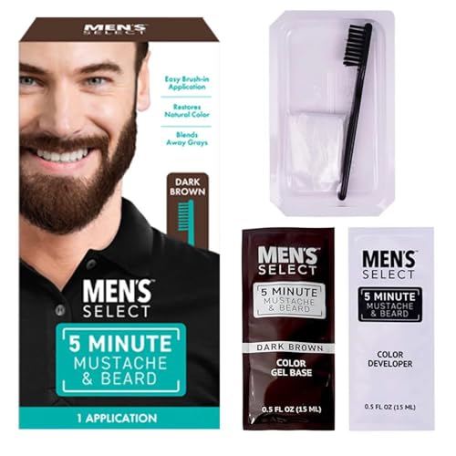 Men’s Select 5 Minute Mustache & Beard Dark Brown Brush-In Facial Hair Dye with Brush Included