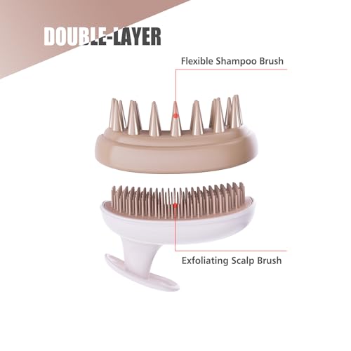 Scalp Massager Shampoo Brush,Scalp Scrubber,Exfoliator for Removing Dandruff & Hair Growth,Detangling Scrubber for All Hair(WhiteBrown)