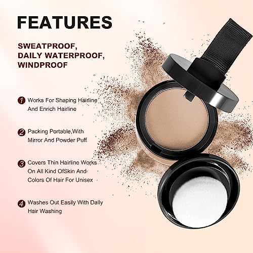 1.Instant Coverage Hair Root Touch Up -The Acosexy Hairline Powder puff can accurately cover the roots of hair. Locks on Until You Shampoo: Hair loss? Skip the embarrassing all-day touch-ups .The color is firm. Make the hair fluffy. Will Makes hair color natural and vibrant. Great for all hair types and texture!