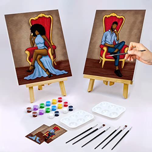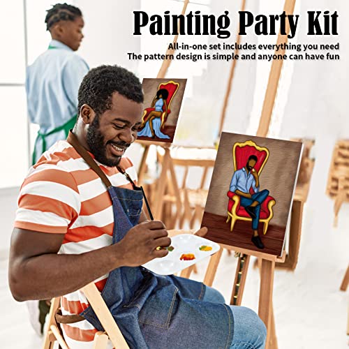 2 Pack 8×10 Canvas Painting Kit Bundle,Couples Paint Party Kits Pre Drawn Canvas for Painting for Adult,Afro King Queen Love Couple Pre Drawn Stretched Canvas Kit Art Set