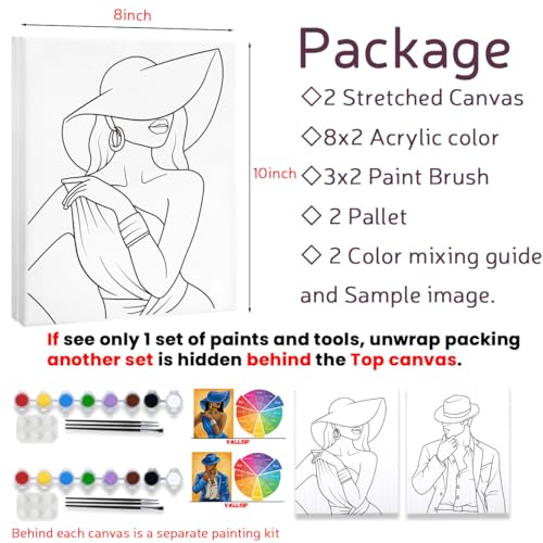 2 Pack Paint and Sip Canvas Painting Kit Pre Drawn Canvas for Painting for Adults Stretched Canvas Couples Games Date Night Afro Elegant Gentleman and Lady Couple Paint Party Valentines